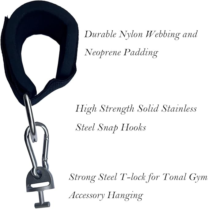 - ★Adjustable Neoprene Padded D-Ring Ankle Strap with Velcro. Made of durable Nylon webbing with a stainless steel D-ring and neoprene padding for comfort.12mm comfortable padding that ensures that the Tonal machine accessories stay in perfect condition even with excessive use.