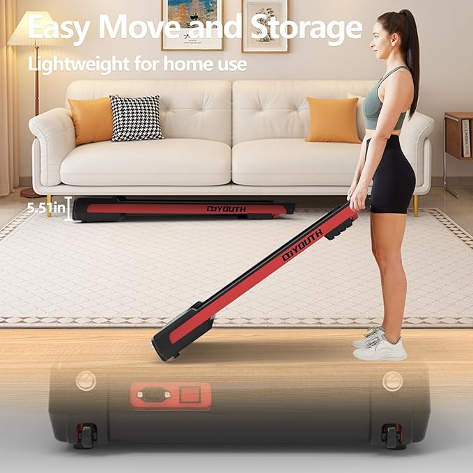 - 【P01-P12 PROGRAM & EASY TO MOVE AND STORE】Start the treadmill and enter the "P" program directly to accelerate fat burning through the preset variable speed running program. Can help to improve your cardiovascular fitness, boost your health, and burn fat. The built-in transport wheels make it easy to move and store this under desk treadmill to save space.