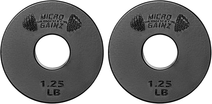 - Premium Set: The black Micro Gainz fractional plates make it simple to distinguish between various weight discs while working out; This set includes 2 Standard Size (1 inch) Fractional dumbbell 1.25 lb weight plates