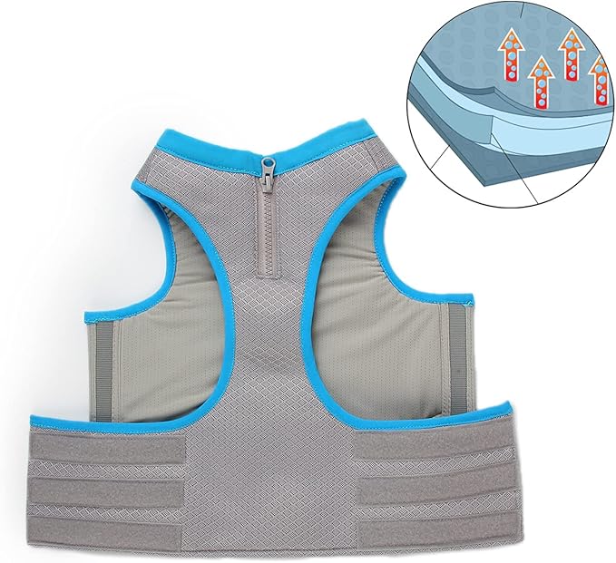 - HOW IT WORKS - Outer Layer:Evaporates water and reflects heat away from dog.Inner Core:Stores water to keep dog cool.Lining:Transfers cooling effect to dog’s body.