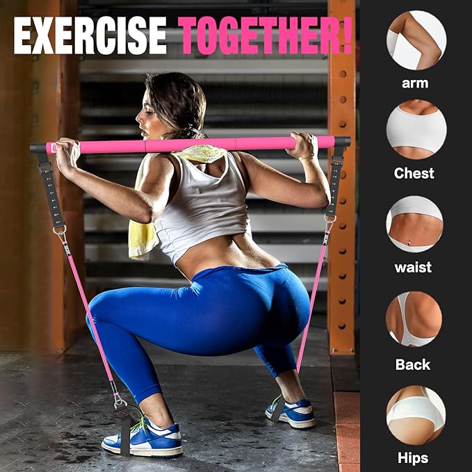 Pilates Bar Kit with Resistance Bands,Pilates Bar with Stackable Bands Workout Equipment for Legs,Hip,Waist and Arm,Exercise Fitness Equipment for Women & Men Home Gym Yoga Pilates