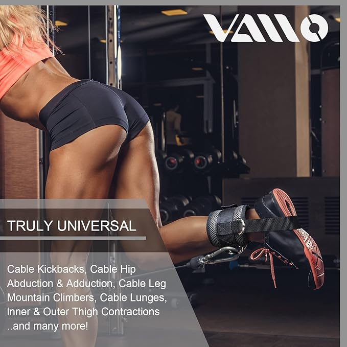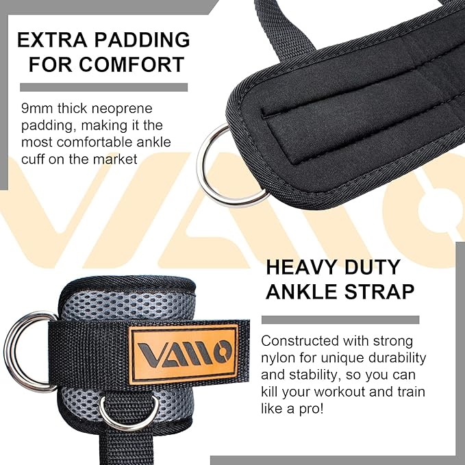 VAIIO Ankle Straps for Cable Machines,Adjustable Comfort fit Neoprene, Reinforce Double D-Ring - Premium Ankle Cuffs to Improve Abdominal Muscles, Lift The Butts, Tone The Legs for Men & Women