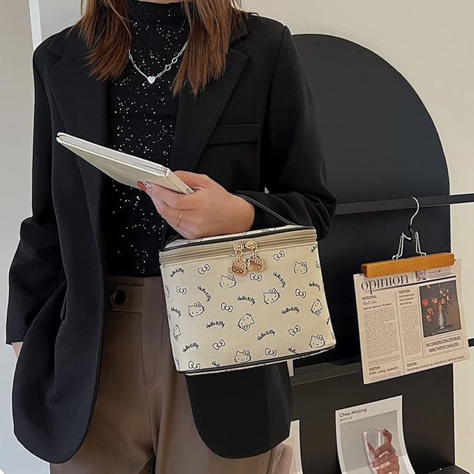 - Appropriate Size -8.66*4.72*5.91 inches. The lightweiht design of the women's makeup bag makes it suitable for luggage and easy to carry. Makeup anytime, anywhere. Cute metal cat head with double-sided zipper for easy access