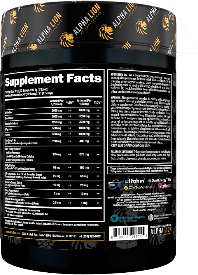 - HOW IT COMPARES: Extreme is a high-intensity, amplified stimulant version of the original, high-performance pre workout powder from Alpha Lion. This supplement takes the original Preworkout and ramps it up a notch, so you can take your workouts to the next level.