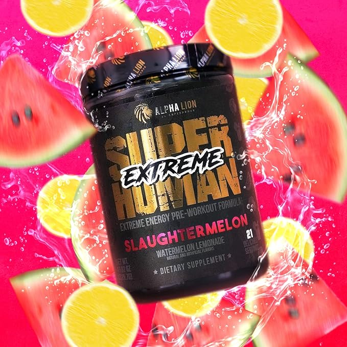 ALPHA LION Superhuman Extreme High Stim Pre Workout Powder, Beta Alanine, L-Taurine & 356mg Tri-Source Caffeine for Sustained Energy, Nitric Oxide & Citrulline for Pump (21 Servings, Slaughtermelon)