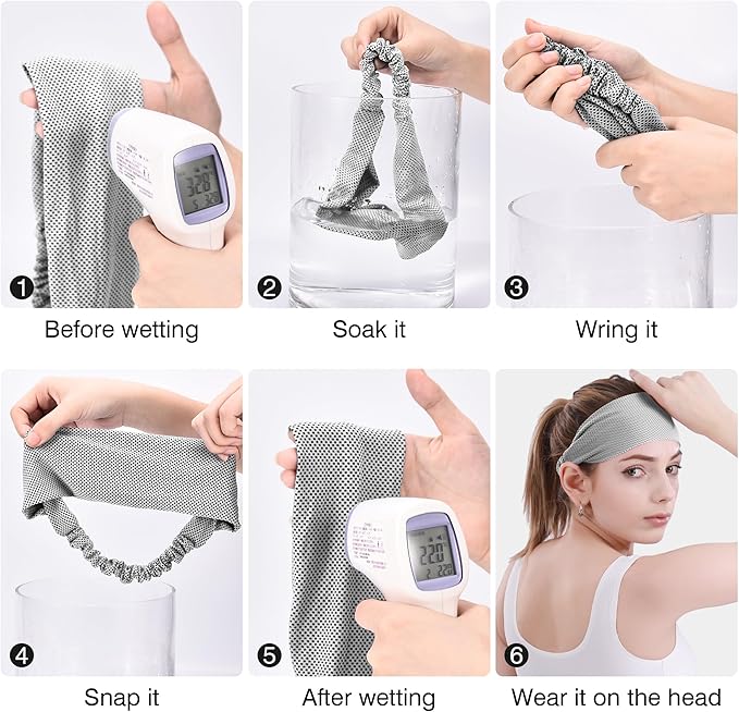 - 【Moisture Wicking & Lightweight.】Cooling headband has premium moisture wicking fabric that helps to draw sweat away quickly and keeps your forehead dry when doing sports. No more worries of your sweat coming down to your face and neck or headache to your head, just enjoy your workout time now.