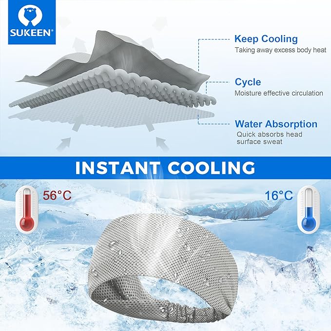 Sukeen Cooling Headband for Men Women, Instant Cooling Running Headband, Sweat Headbands for Workout, Sports Headbands for Yoga, Golf, Gym, Camping, Tennis, 20 inches