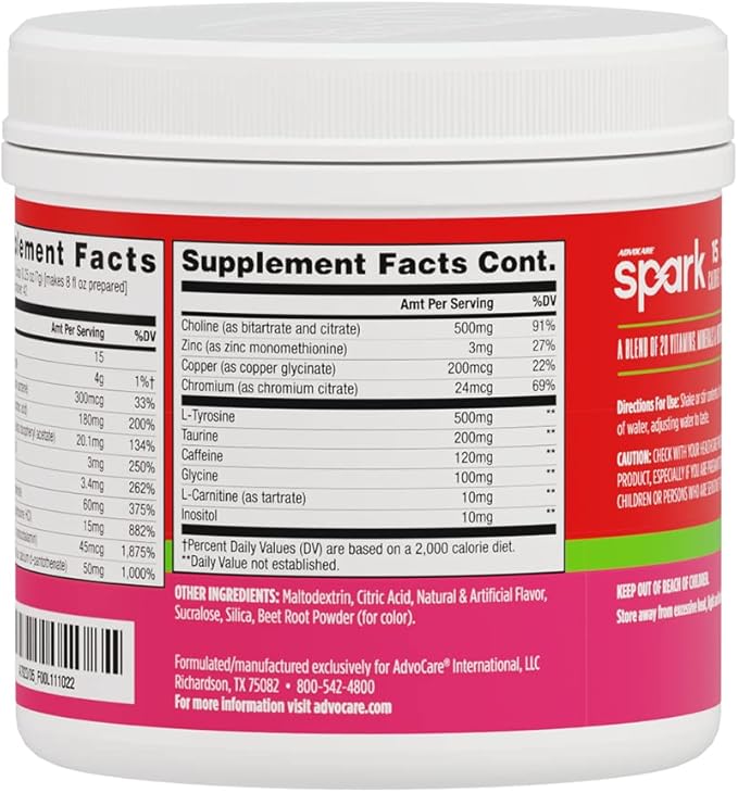 AdvoCare Spark Vitamin & Amino Acid Supplement - Focus & Energy Drink Powder Mix with Vitamin A, B-6, C & E - Also Includes L-Carnitine & L-Tyrosine - Strawberry - 10.5 oz