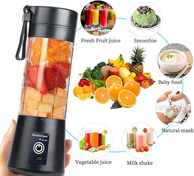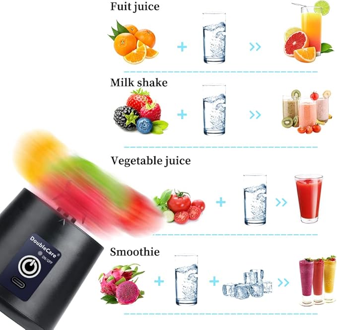 - 【Smart Safety Protection System】--DoubleCare portable blender is built-in safety features, Magnetic sensing switch ultra safe to use and clean, the juicer cup will stop working when body and bottom separated,Prevent injuries and use more safely!