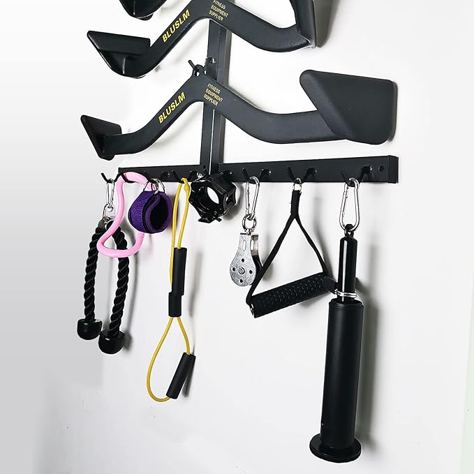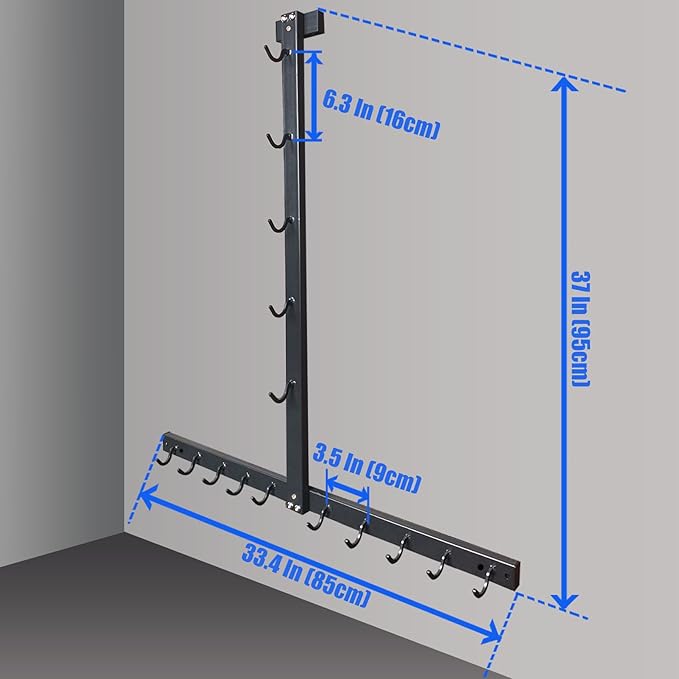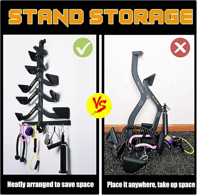 - SIZE: The length of the down side is 33 Inch for various bands and gym attachments . The height of the upper side storage rack is 38 Inch with 5 hooks for mag grips.