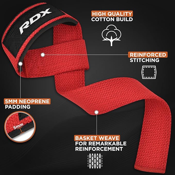 RDX Weight Lifting Straps Deadlifting Powerlifting, 5MM Neoprene Wrist Support, Anti Slip 60CM Hand Bar Grip, Heavy Duty Bodybuilding Weightlifting Workout, Soft Cotton, Strength Training Gym Fitness