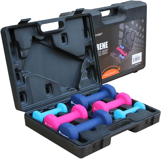 Gymenist Dumbbell Set With Hard Plastic Case Includes 3 Pairs And A Hard Travel Carry Storage Case