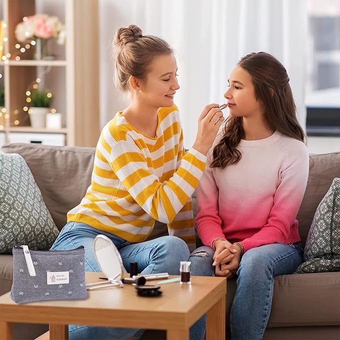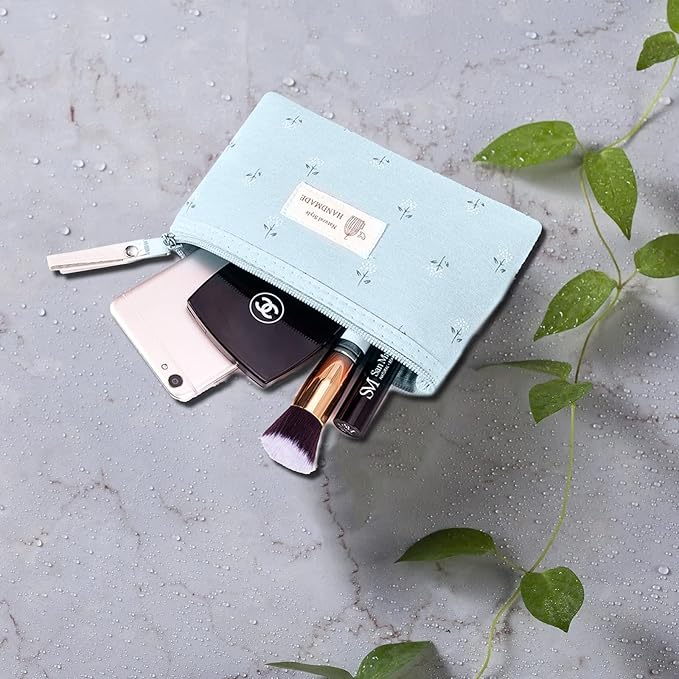 Qikuver Canvas Cosmetic Bags, 2 Pieces Cosmetic Bags for Women, Makeup bag Cute Cosmetic Bag Organizer Small Mini Makeup Pouch for Purse Toiletry Bag