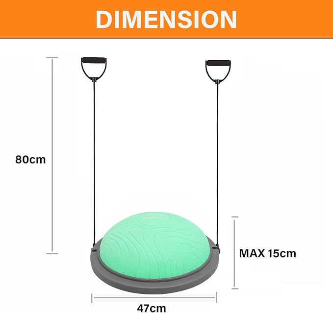 - MULTIPLE TRAINING: Purchase the balance ball trainer with the included resistance bands to assist in expanding upper body training. Using the half balance ball can also help improve core strength, posture, coordination, balance and flexibility; great for strengthening muscles, ligaments, tendons and joints.