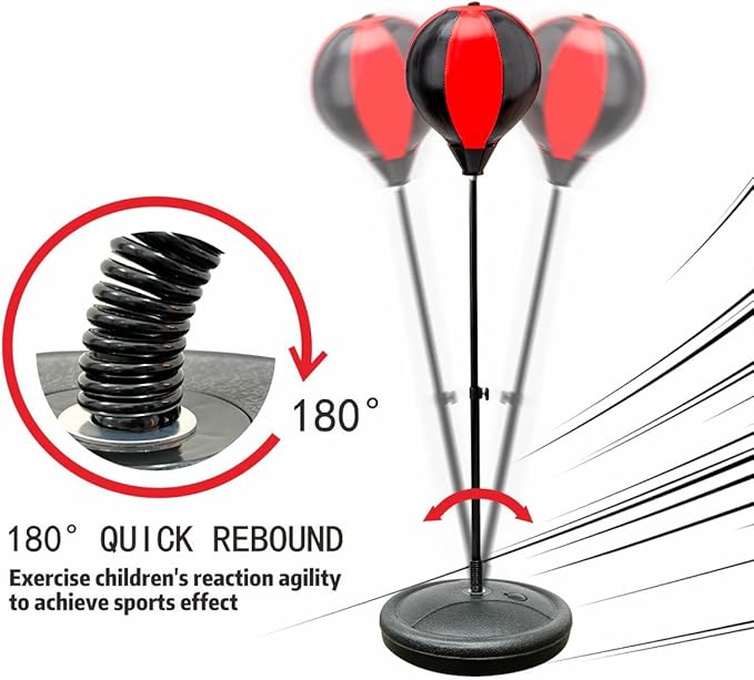 - Liberate the children, liberate the adults: punching bag for kids to exercise, which can be trusted to the kids for punching bag. The reinforced punching base and high-quality punching bag stand spring ensure the punching stability and continuity and exercise children's agility. The boxing bag soothes the child's irritability and boosts the happy dopamine.