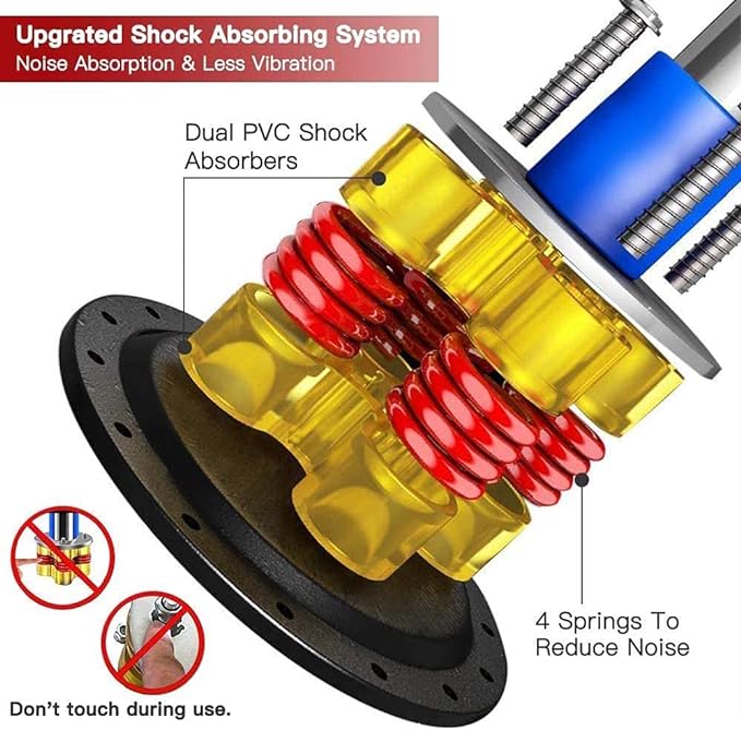 - Upgraded shock absorbing system: Dual TPU absorbers and 4 springs to achieve 360°shock and noise absorption; Tip: Springs can be removed for less vibration to do intensive strength training