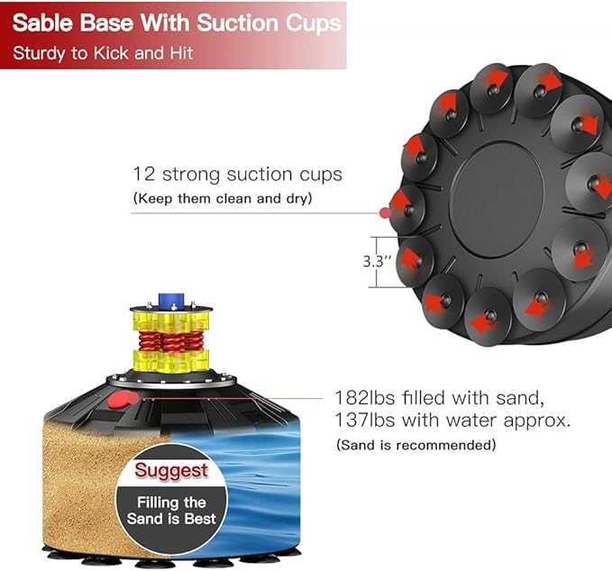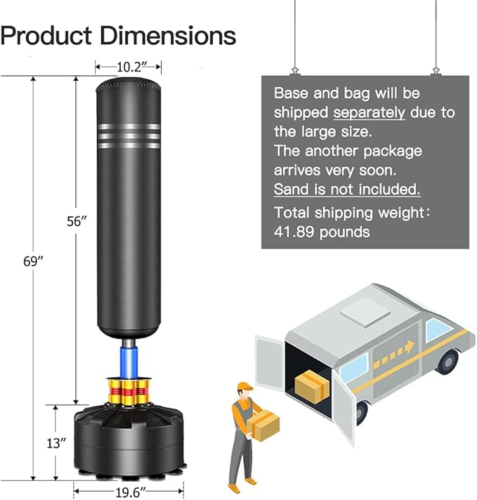 - High-quality inner material: Stainless steel tube stand is encased in multi-layer construction: 2mm thickened PU leather striking surface, high-density EPE foam, eco-friendly fabric buffer; Tear-resistant, fast rebound, is sure to withstand long-term onslaught of kicks and punches
