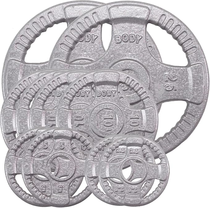 - PREMIUM QUALITY GREY IRON: Body-Solid Steel Grip Olympic plates are cast from the highest quality gray iron, creating an exceptionally strong and durable product. Feature baked on hammertone gray finish that is durable, chip and rust resistant. Heavy lifting has never been easier or safer.