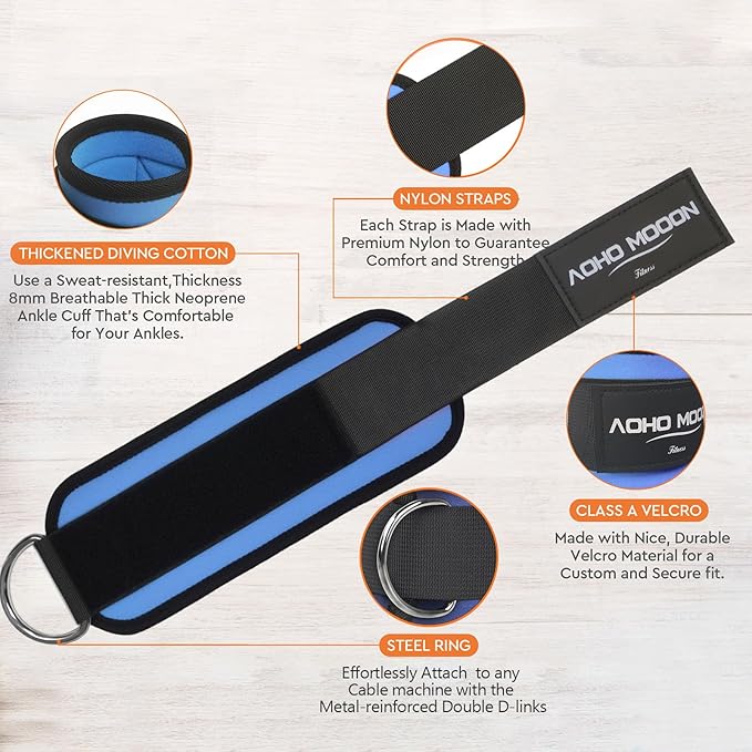 Comfortable Adjustable Padded Ankle Wrist Cuffs Neoprene Padded Straps D-Ring Glute Kickback for Cable Machine, Ideal for Glutes Exercises