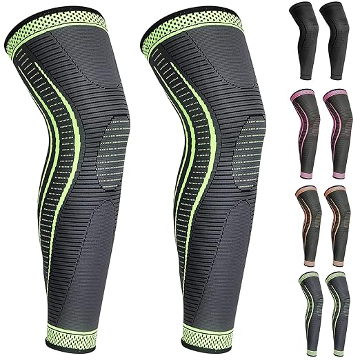 2 Pack Full Leg Compression Sleeves, Long Knee Brace Support for ACL,PCL, Meniscus Tear, Arthritis, Tendinitis, Joint Pain Relief, Men And Women (Green, Small)