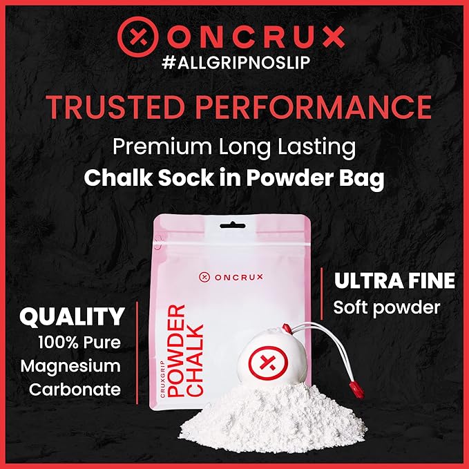 - ✔️ SOCK INSIDE BAG - To help reduce waste, we've included our chalk sock inside the powder bag. Look inside and feel around! Refill your gym chalk sock by using the adjustable drawstring to open & insert ONCRUX weightlifting chalk powder.