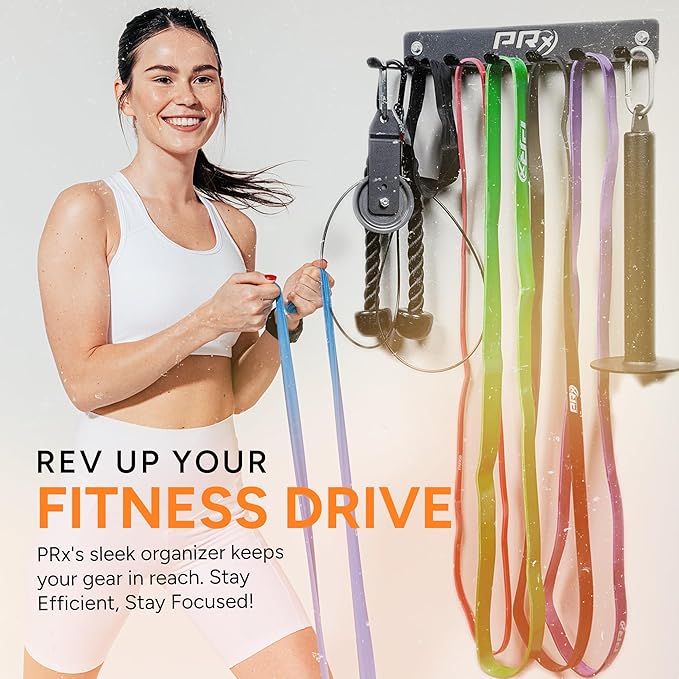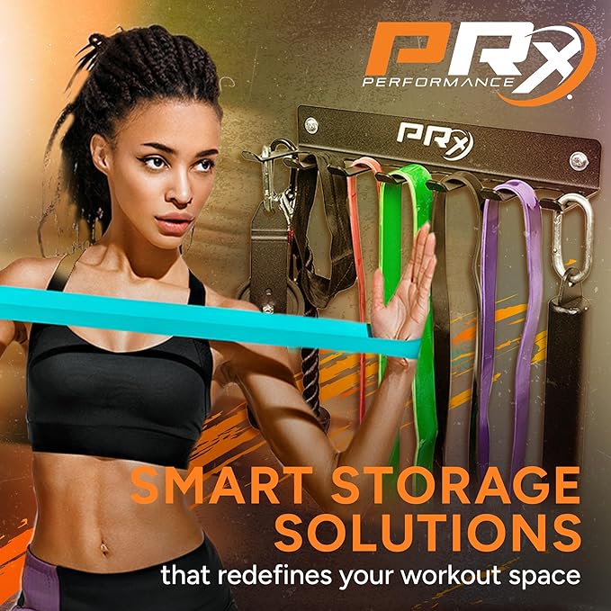 - EFFICIENT GEAR ORGANIZATION: Keep your workout zone clutter-free and ready for action! PRx Performance's rack, with its practical 18"x5"x2.5" size, neatly houses jump ropes, resistance bands, and more, ensuring your gear is always within reach for that high-energy session.