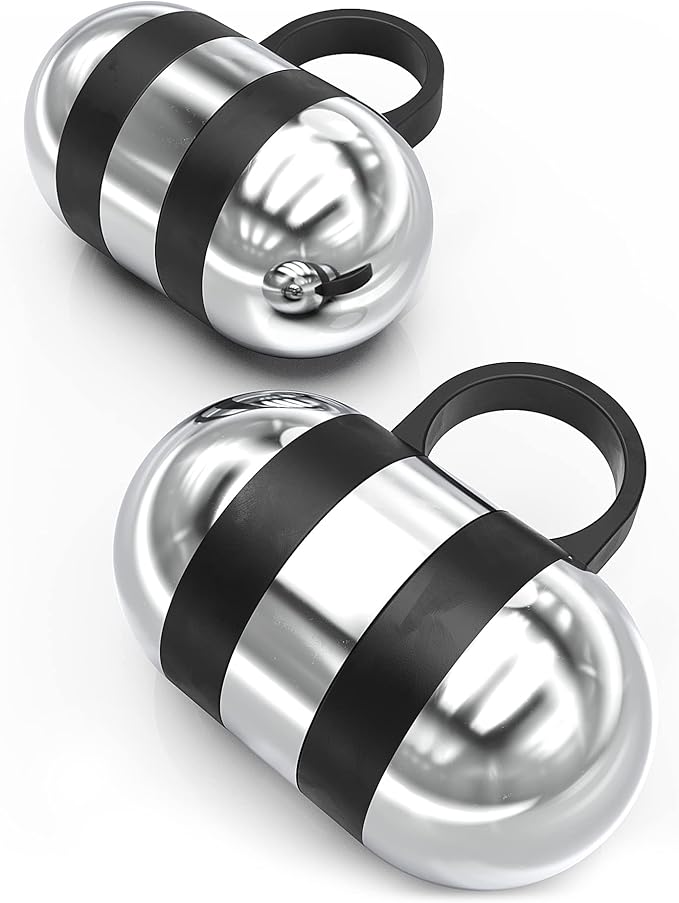- ★ HOLD-TIGHT GRIP ★ – With their rounded oblong and smooth design, these hand weights will easily sit in your palms. And with the addition of a finger band, they really aren’t going anywhere! The screw-in assemblies and reversible finger band allows you to easily switch between a Large and Small-size grip. These grips are specifically made with your comfort and safety in mind, and to be used by athletes of different ages and sizes!