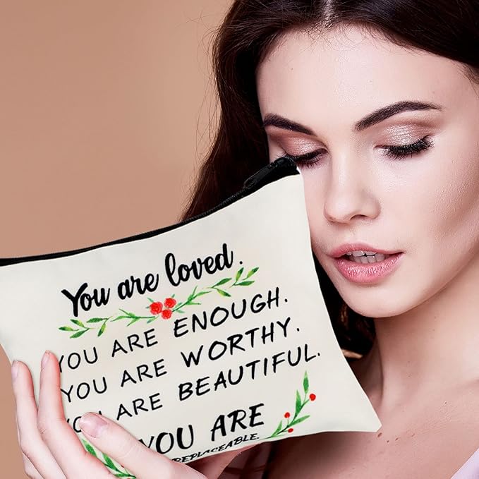 Pinkunn 10 Pcs Inspirational Cosmetic Bag for Girls CNA Week Gifts Bulk You Are Loved You Are Enough Case Cosmetic Bag Positive Toiletry Bag Gift for Women Sister(You Are Loved)