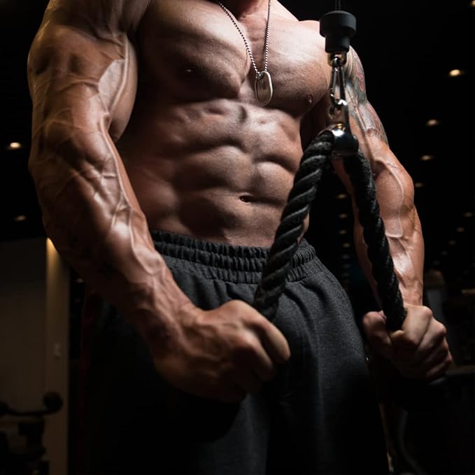 - Nylon Braided Tricep Rope - Made of heavy-duty black nylon braided rope with solid rubber ends, it also features a hard chrome swivel that allows flexible movements for your triceps pull-downs workout.