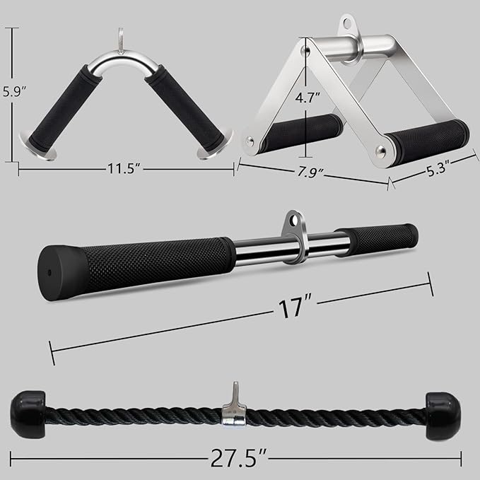 - Package Includes - 1 * V-Shaped Bar +1 * Straight Rotaing Bar + 1 * V Handle with Rotation + 1* Nylon Braided Tricep Rope