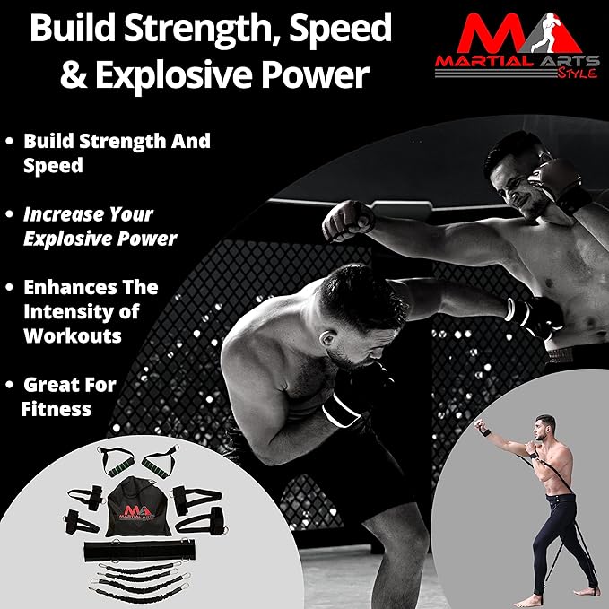 - BUILD STRENGTH, SPEED AND EXPLOSIVE POWER - The boxing resistance bands build your strength, speed and explosive power because it increases the intensity of each and everyone of your movements during your workouts. This means you enhance your leg strength while training your footwork and perfecting your kicks.