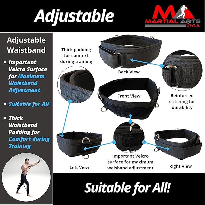 - SUITABLE FOR MOST AND EVERYWHERE - The boxing resistance bands are suitable to most body types because they are designed with an adjustable belt strap (MAX waist size = 39.2 inches for the belt) and adjustable ankle straps. This means the boxing resistance suit will fit you perfectly and will be comfortable to train with. It is also lightweight and compact because it comes with a perfectly fitted carry bag.