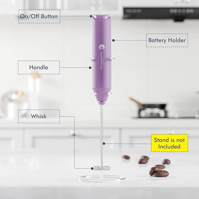 Powerful Milk Frother Handheld Foam Maker, Mini Whisk Drink Mixer for Coffee, Cappuccino, Latte, Matcha, Hot Chocolate, No Stand, Light Purple