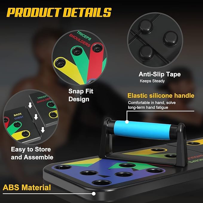 - Premium Quality - The push-up board is made of ABS ductile plastic which makes the material very study with high impact & temperature resistance. Foldable design, nonslip handles that fit perfectly in the board, and built-in carry handles to make it easier and more convenient to transport.