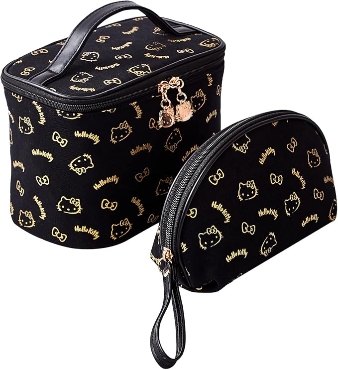 AmBealla Make up Bag Travel Cosmetic Bags Brush Holder Zipper Pouch Case Organizer Cute Organizer Suitable for Purse for Women (Black 2PCS)