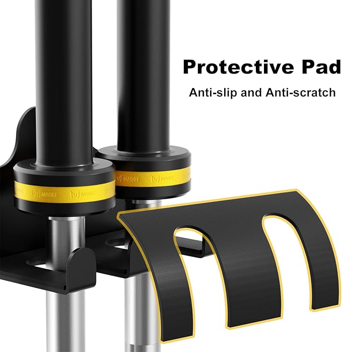 - Protective Pad Designed - The barbell hanger is sprayed with a matte matte anti-rust layer and comes with a rubber pad to protect your barbell coating.The surface is smooth and durable against rust.Provides good care for your steel bars, and you can use them for a long time
