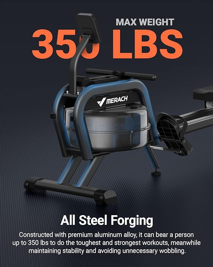 - Ultra-Quiet: The rower machine is forged from all steel, equipped with double-track and supports a max of 350lbs weight capacity. Aluminum alloy rails and upgraded bearings eliminate the noise from the seat pulley's friction.