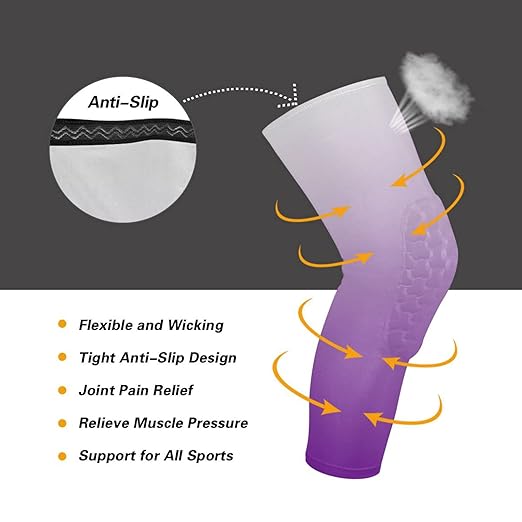 Purple Gradient Sports Knee Pads Youth Volleyball Basketball Knee Pads Long Leg Sleeves Braces Compression Wrestling Knee Pads for Boys Girls Football Dance Yoga