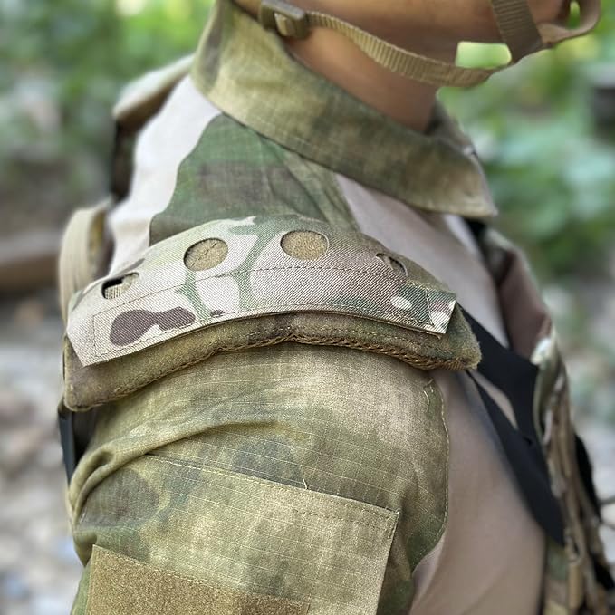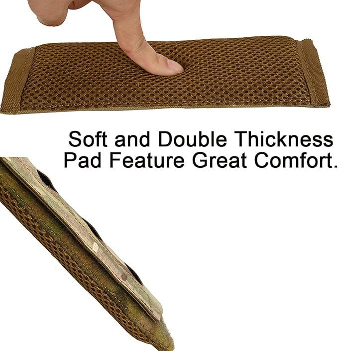 - [Shoulder Pads Adapt to 2" Shoulder Strap]:This plate carrier shoulder pads adapt to any webbing shoulder strap up to 2" in width,eg:FCS,LBT,JPC and ect vests,chest rigs or sling bags.Hooks secure the pad to the strap with the loop underneath.Enhanced comfort while wearing vests and chest rigs