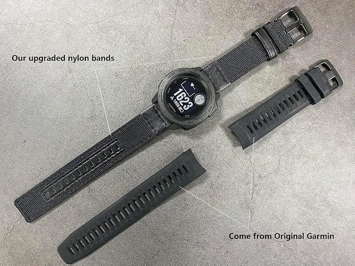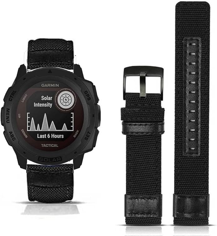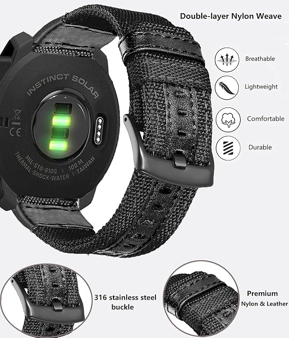 - ⌚【Durable Instinct Watch Bands】Premium Garmin Instinct nylon watch strap is made of high-quality durable fabric breathable nylon canvas, sweat-resistant, without skin irritation. Classic colors and integrate with premium leather to change the style of your Garmin Instinct 2 Tactical. Suitable for daily work and exercise, air holes design make it lightweight and breathable, adding a touch of bright color to physical training.