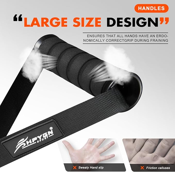 - [Suitable for All Hand Sizes]- Super 5.24 inches wide design to accommodate all hand sizes, Each grip handles can be hold up to 600lbs pull the above, fit hands perfectly with room to spare, and more flexible, lightweight and comfortable. HPYGN cable handles gym equipment can safely protect your hands, also available in four different color choices: Black, Red, Grey, and Blue. It's also a great gift for friends and family who love to do exercise.