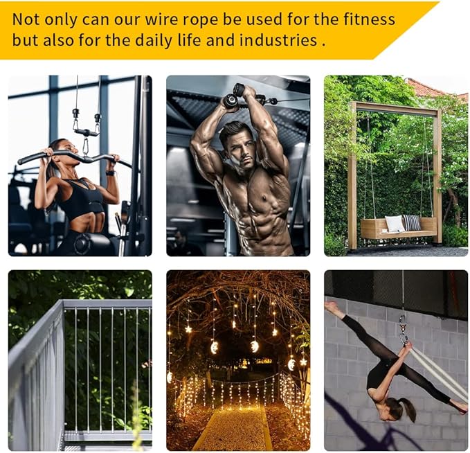 - Specification:Cable length 59/118 inches,Steel wire rope for home gym diameter 0.2inch/5mm, includes the black PU coating.a variety of styles to choose from,Optional length,easy to install.