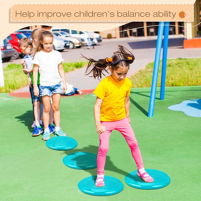 - Strengthens Balance and Core Strength: the desk workout equipment is suitable for office, home, school and other places; You can place these cushions on office chairs as cushions to relax, or you can use them as props to design games for children to participate in and exercise; Wiggle seats can strengthen kids core muscles and improve their balance, coordination, and flexibility by standing on the balancing