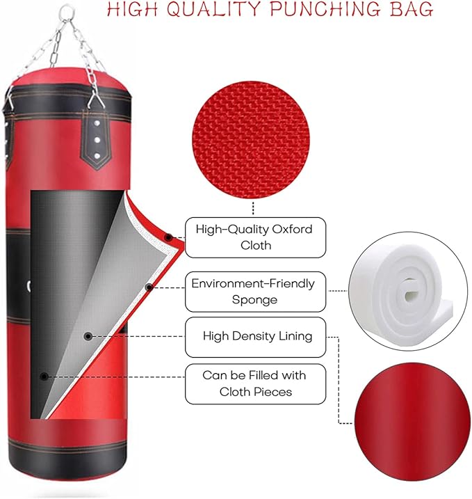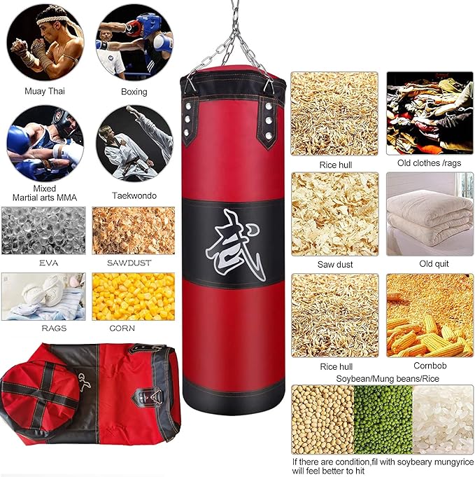- 【 EASY TO FILL 】: Heavy punching bag is empty, easy to carry and storage. You can fill it up with sawdust, sand, old cloth, shredded cotton fabric, sponge and more. But please don’t only install sand, the filling preferably no more than 50 pounds