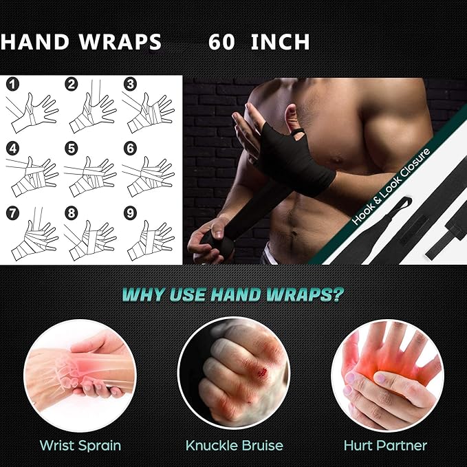 - 【 PROTECT YOUR FIST 】: When hiting the boxing bag, the thickened high elastic sponge and PU patch will provides a soft surfac to protect your fist and bring more comfortable punching experience. The hand wraps can also protect the wrist and hand joints