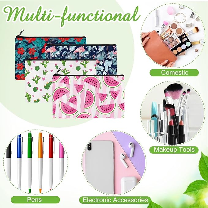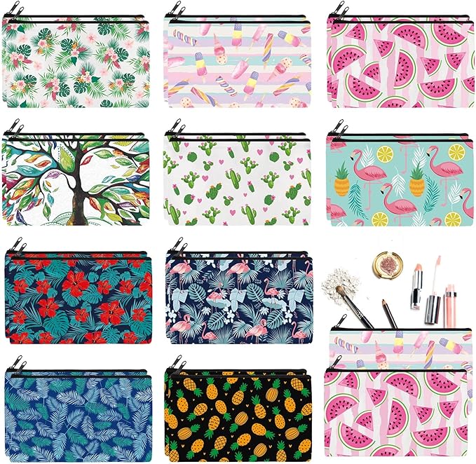 - Colorful and Summer Print: the makeup bags are designed with 10 different summer patterns, colorful and cute; These patterns can give you a sense of beauty and make you more eye catching and charming; Different patterns can also help you distinguish between different uses