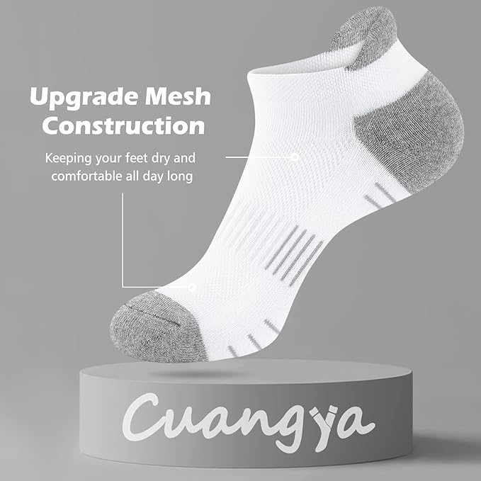 • Arch Support for Running Socks - Designed specifically for runners, our short socks offer arch support with just the right amount of compression to keep you comfortable and secure while walking, hiking, exercising, jogging, relaxing, and running. They provide you with the ultimate in comfort and confidence, ensuring they stay in place all day long.