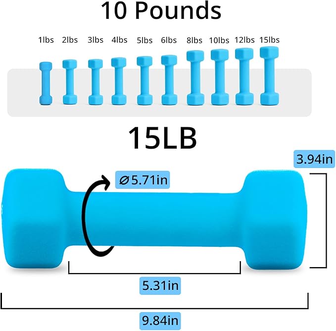 Portzon Weights Dumbbells 10 Colors Options Compatible with Set of 2 Neoprene Dumbbells Set,1-15 LB, Anti-Slip, Anti-roll, Hex Shape for Shoulder,Neck, and Hand Training for Seniors