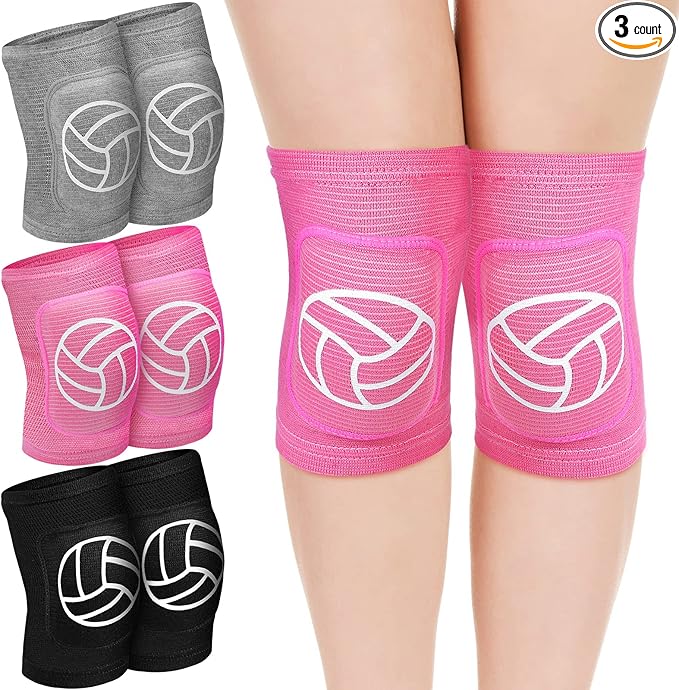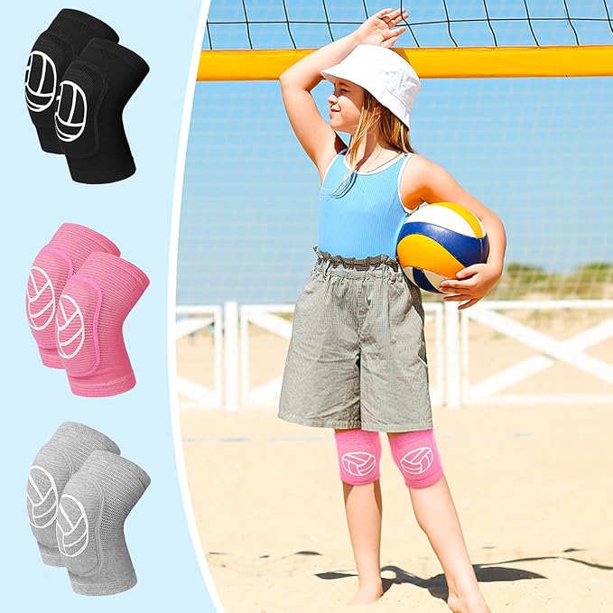 Leyndo 3 Pairs Volleyball Knee Pads for Kids Soft Breathable Non Slip Dance Knee Pads Collision Avoidance Knee Brace for Youth Girls Boys Dance Yoga Running Workout