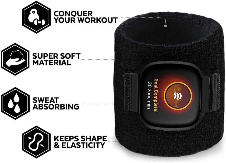 - Stay comfortable and focused during your workouts with this sport wrist watch sweatband for Fitbit Versa 3/Sense Smart Watch, Made with non-slip stretch fabric, it fits securely on your wrist and absorbs sweat to keep you feeling fresh